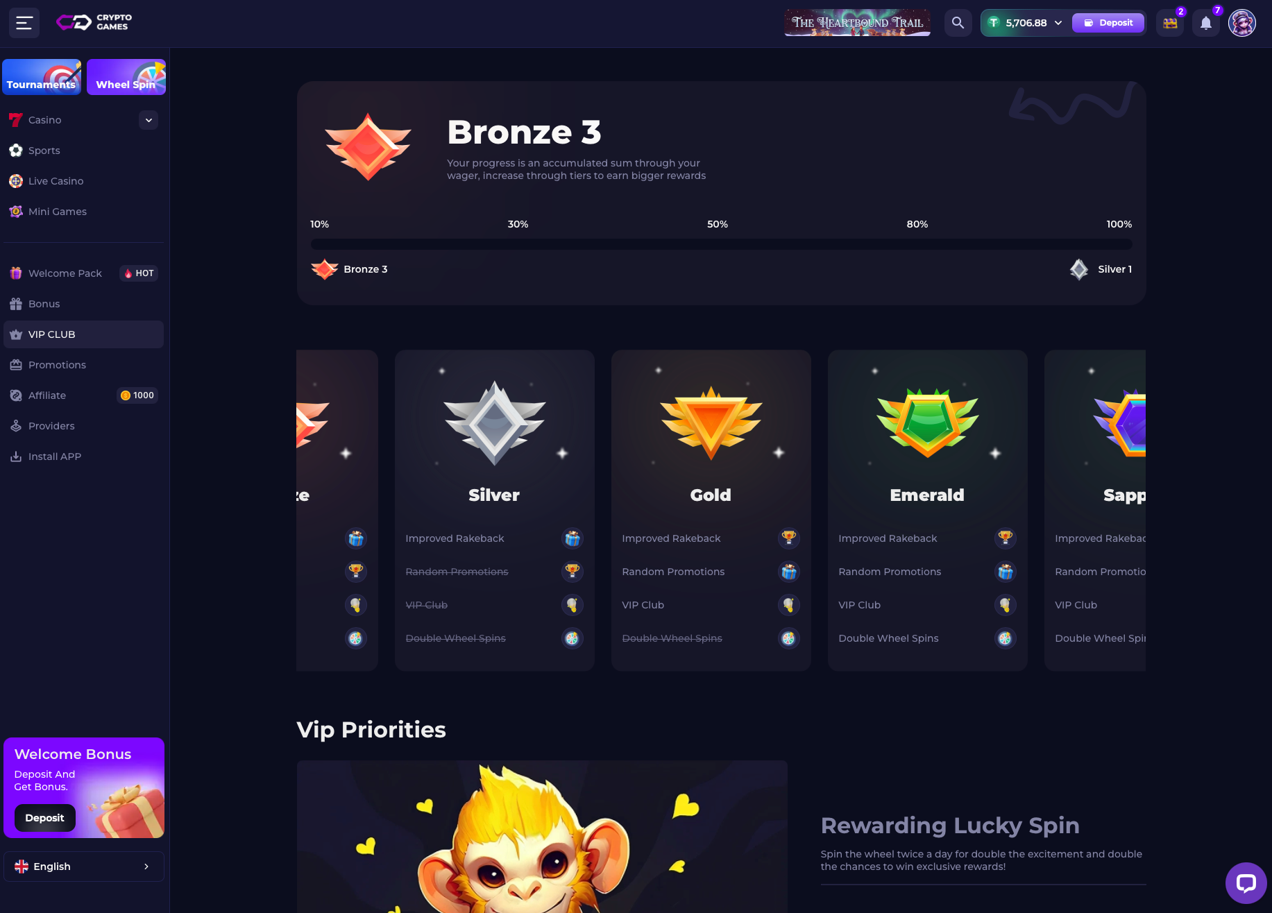Once you reach Gold, Emerald, and Sapphire, the overall value of the benefits increases, including access to stronger bonuses and higher-value reward options.