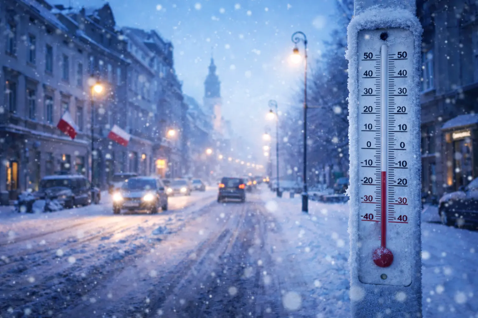 Jednocześnie IMGW prognozuje intensywne opady śniegu, które mogą wystąpić równolegle z bardzo niskimi temperaturami. W praktyce oznacza to trudne warunki na drogach oraz zwiększone ryzyko przerw w dostawach energii.