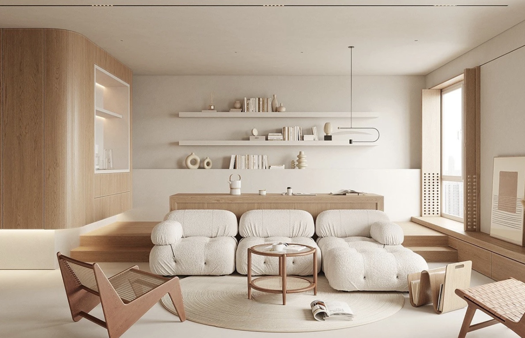 Nowy sezon nie narzuca konkretnych stylów — skandynawskiego, loftowego czy minimalistycznego. Wręcz przeciwnie, mile widziane jest mieszanie stylów. W jednym pomieszczeniu może współistnieć miękka sofa w pastelowej tapicerce i surowy metalowy regał. To właśnie jest główny trend: przestrzeń powinna dostosowywać się do człowieka, a nie człowiek do przestrzeni.